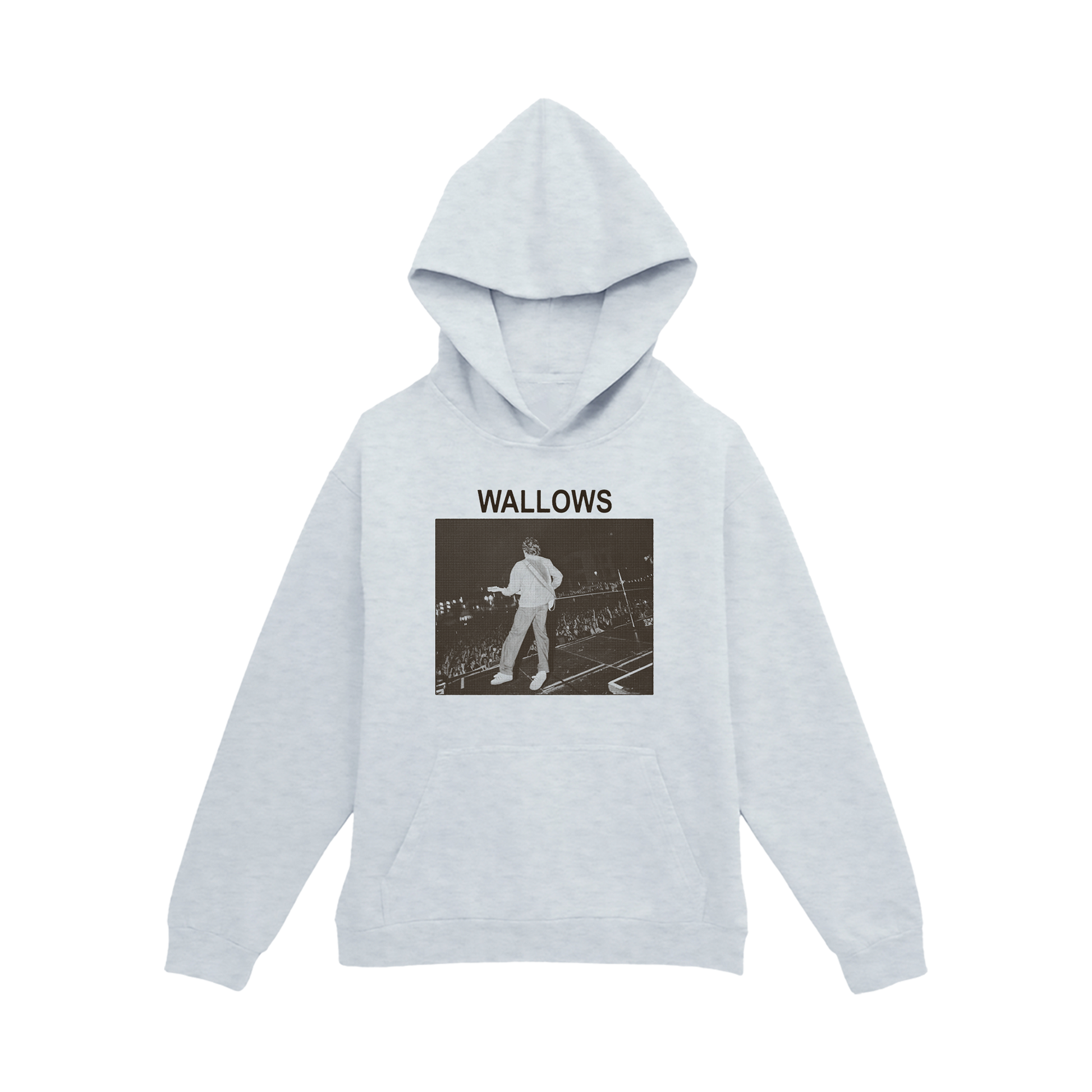 "Stage Crowd Photo" design screenprinted on the front of a heavyweight pullover hoodie.